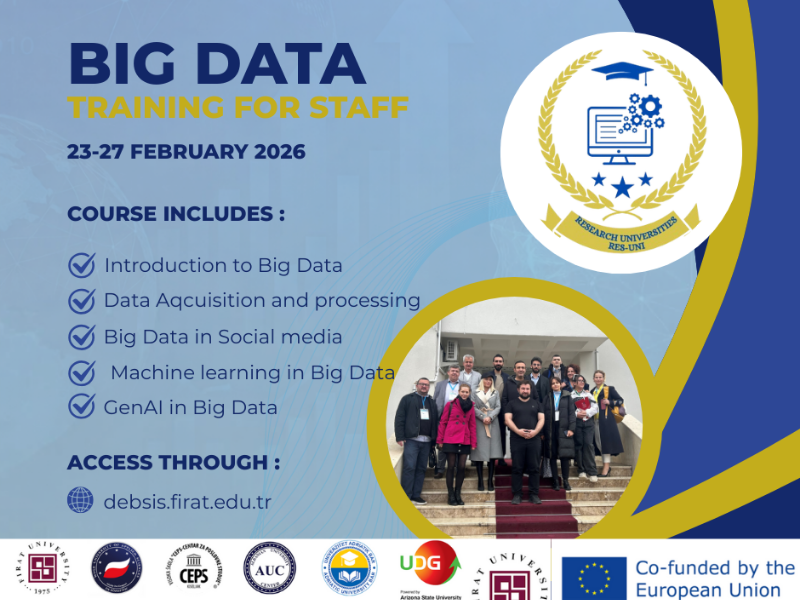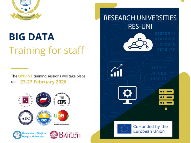 Projekti CBHE: RES-UNI (Research Universities), në kuadër të planit të trajnimeve, organizon një cikël trajnimesh në fushën e Big Data, të dedikuar për stafin akademik. Ky cikël synon përmirësimin e kompetencave profesionale dhe forcimin e kapaciteteve institucionale në fushat moderne të përpunimit dhe analizës së të dhënave.