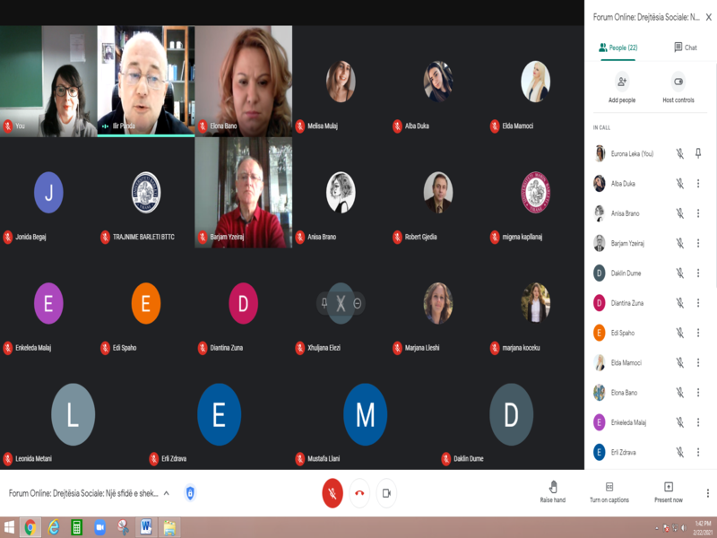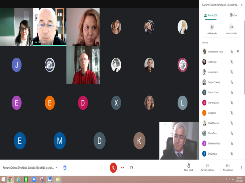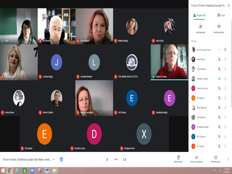Instituti Shqiptar për Çështjet Publike, AIPA dhe Departamenti i Drejtësisë, në Universitetin Barleti, organizuan më datë 22 shkurt, 2021, në kuadër të Ditës Botërore të Drejtësisë Sociale, forumin online me temë: “Drejtësia Sociale: një sfidë e shekullit të ri”.