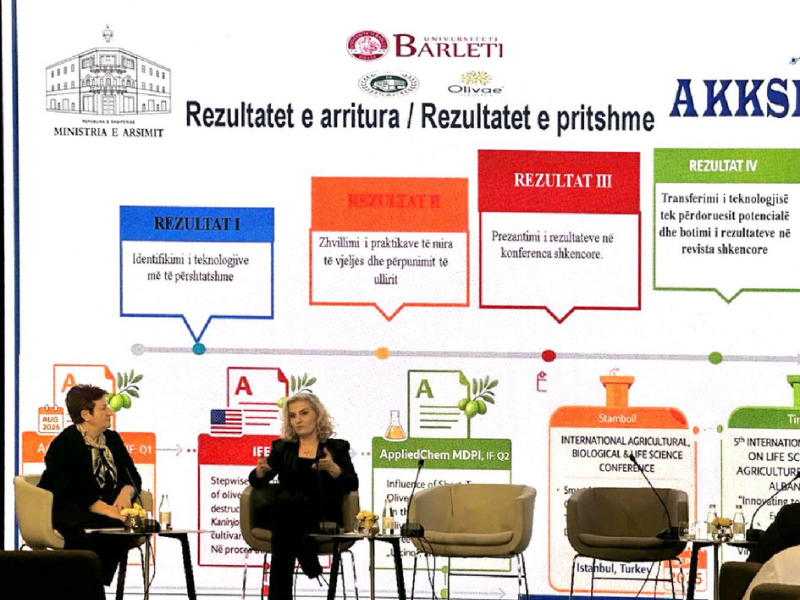 Projekti me titull “Zbatimi i teknologjive inovative të integruara të vjeljes dhe përpunimit të ullirit për përmirësimin e cilësisë së vajit” dëshmon se kërkimi shkencor universitar, kur është i orientuar drejt nevojave të tregut, mund të shndërrohet në zgjidhje të aplikueshme për sektorin prodhues. Përmes identifikimit dhe zbatimit të teknologjive bashkëkohore, si dhe transferimit të njohurive te fermerët dhe subjektet përpunuese, projekti kontribuon drejtpërdrejt në rritjen e cilësisë dhe konkurrueshmërisë së vajit të ullirit.